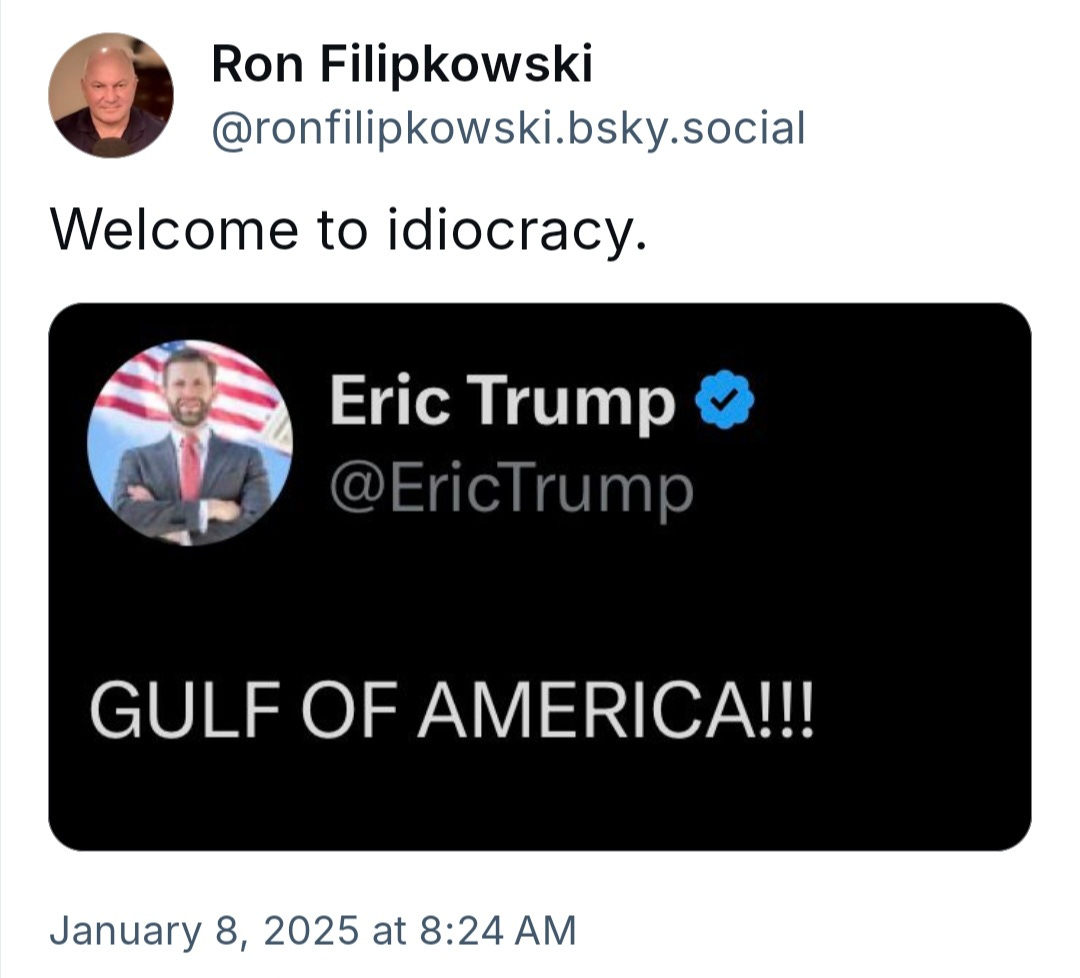 If all that weren't enough, Donald Trump has even proposed renaming the Gulf of Mexico as the Gulf of America. This prompted another one of Trump's sons, Eric, to issue his own tweet saying “GULF OF AMERICA!!!”