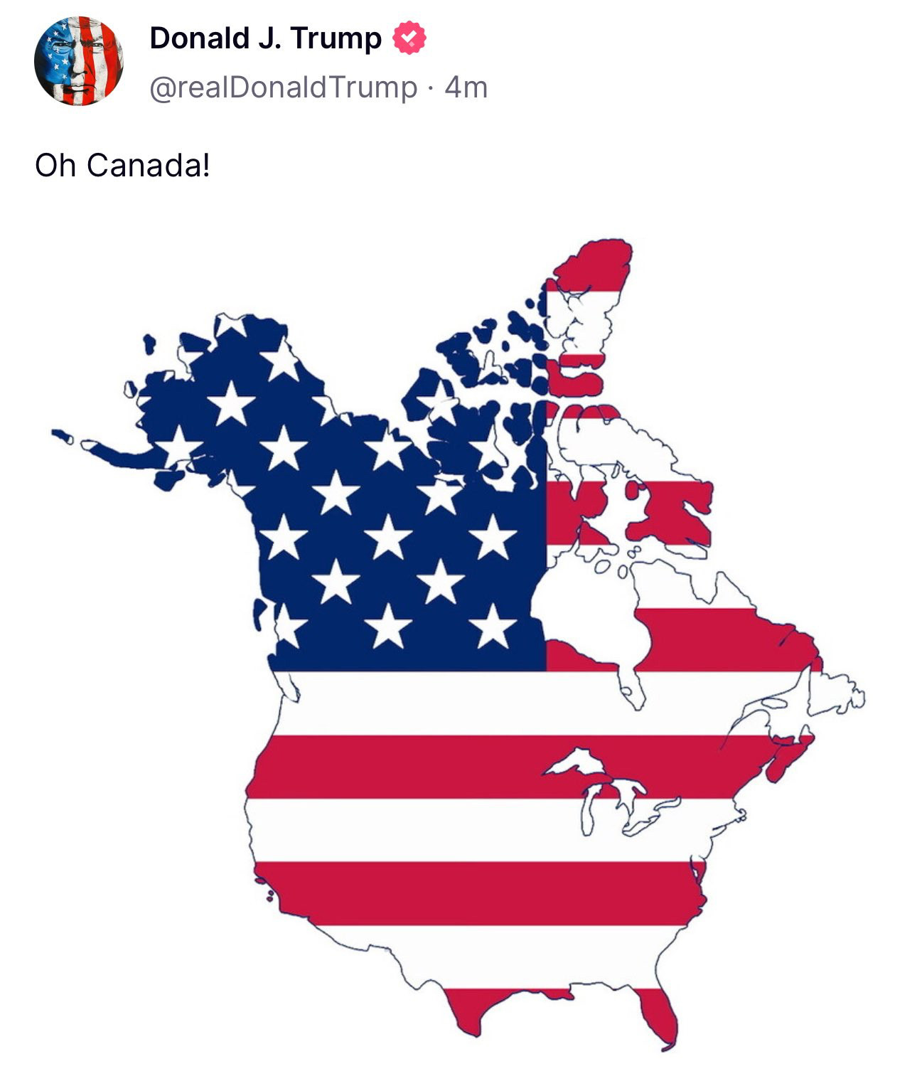 Trump has been posting images on his Truth Social account where the US borders are redrawn to include Canada, such as this one.