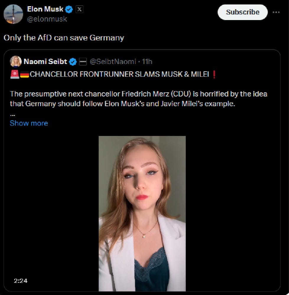 Only the German voters can squash Musk's dream of the AfD ruling Germany.