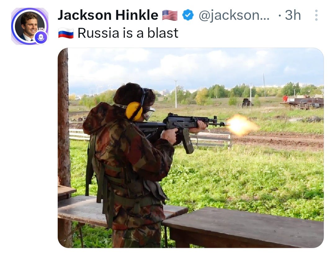 Back in September Jackson Hinkle visited Russia where he got a chance to shoot off some weapons and visit the grave of the Wagner Group founder Yevgeny Prigozhin.