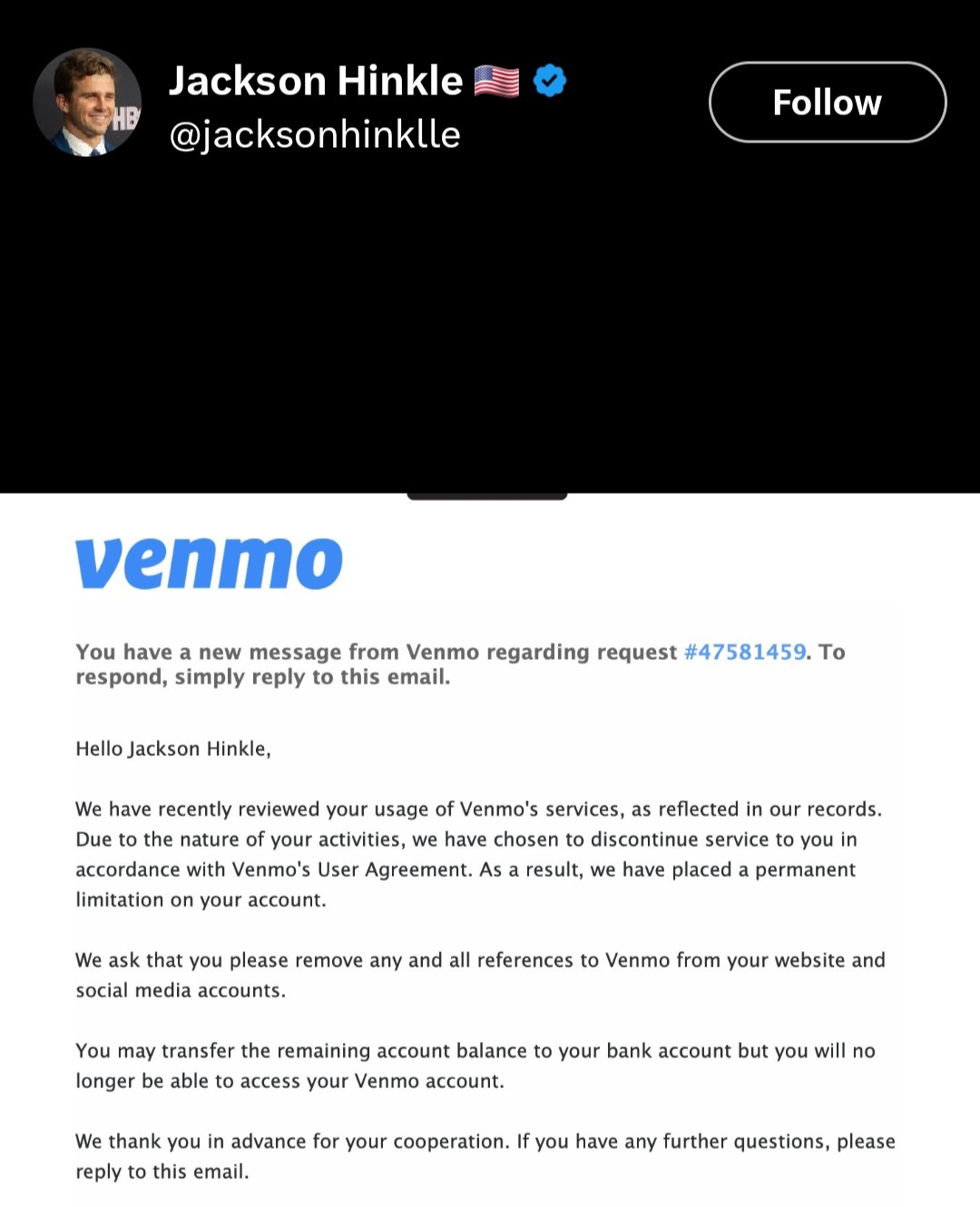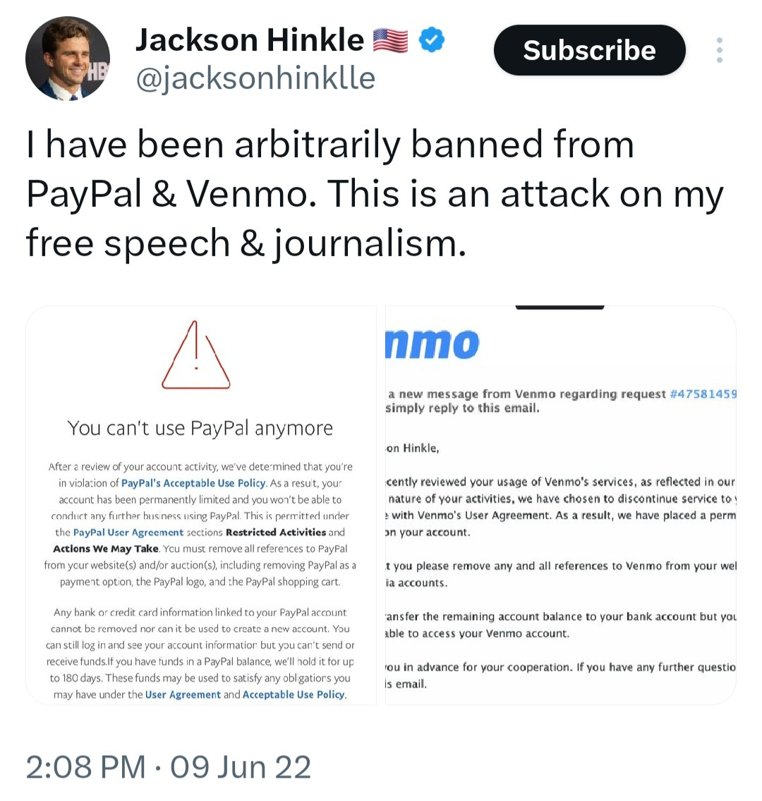 The good news is that Jackson Hinkle’s effort to be a Kremlin propagandist based in the United States isn’t going very smoothly for him. He lost his JacksonHinkleTV streaming show when Twitch banned him. He has lost both his PayPal and Venmo accounts so he now has a harder time with processing online payments.