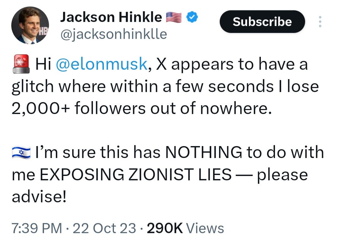 For all his efforts, as of this writing, Jackson Hinkle has only gotten a total of two paid subscribers. That means that he is only making a total of $6 per month in subscriptions, which isn’t much to live on in the United States. At this point his only hope for making money from Twitter/X is to get enough attention so he can earn some of that ad revenue.