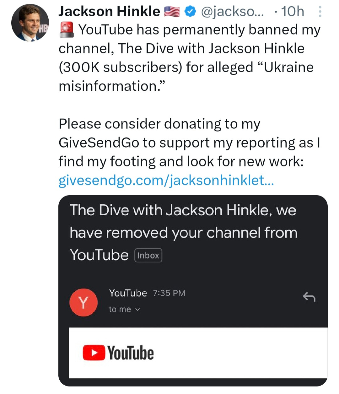 YouTube pulled the plug on his channel so Rumble is now the only place online where you can view The Dive With Jackson Hinkle.