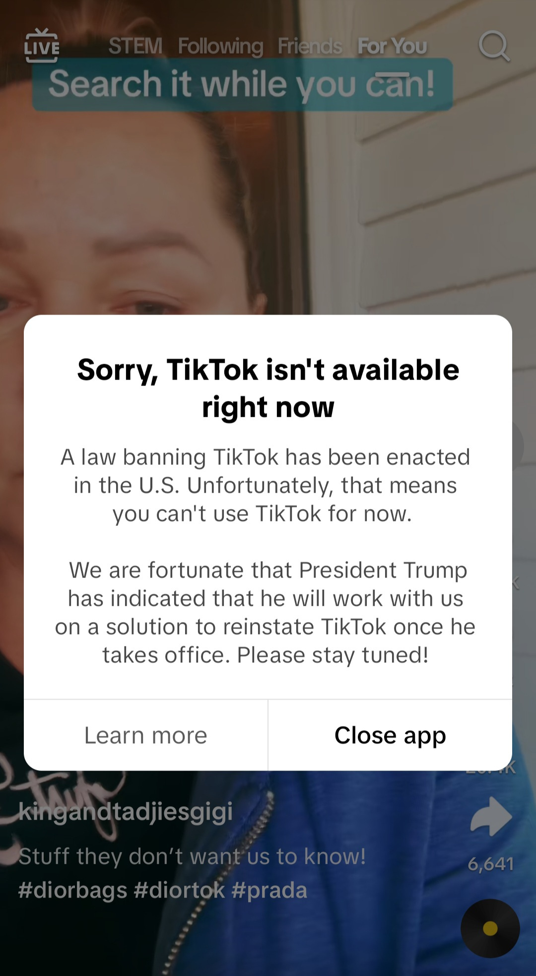 A law banning TikTok has been enacted in the U.S. Unfortunately, that means you can't use TikTok for now.
