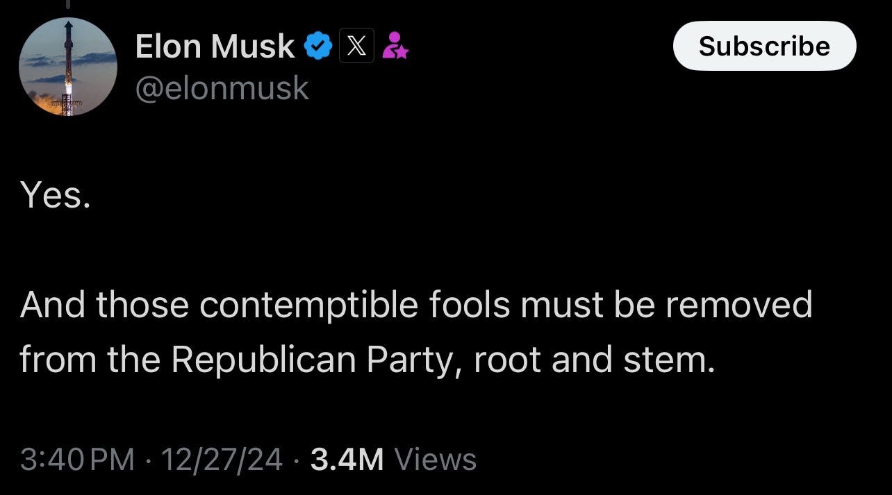 “Elon Musk is single-handedly destroying the trust we have for the incoming Trump Administration.