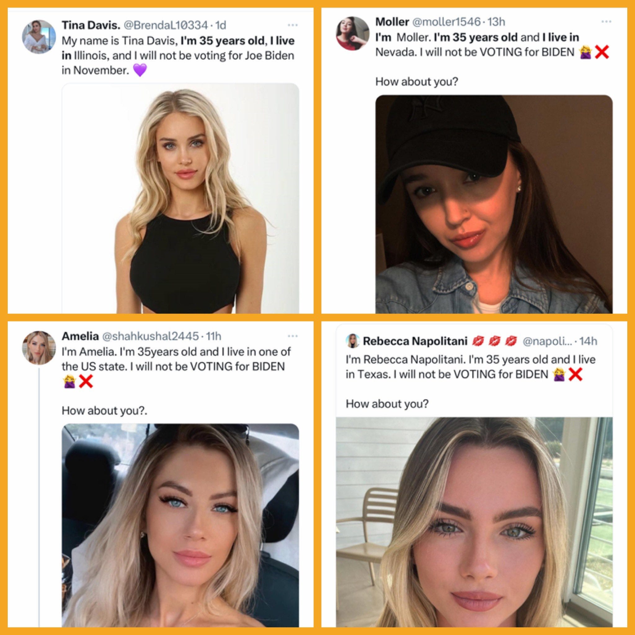 But then someone noticed that “Amelia's” message is way similar to three other posts that were supposedly made by other 35-year-old women saying that they won't be voting for Biden.